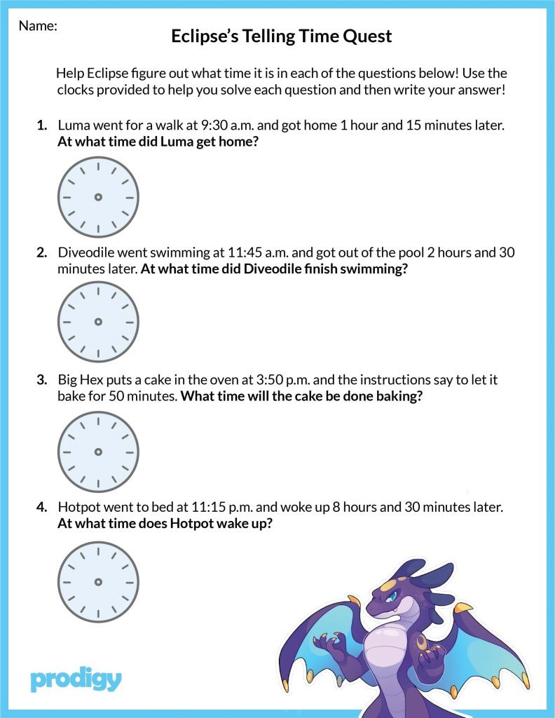 Time Worksheets, Free Simple Printable Time Worksheets - BYJU'S The grade 3 math time worksheets teach kids to tell time to five minutes and one minute. The time worksheets include word problems for telling time from analog clocks and drawing hands on clock faces. Kids learn to convert units of time, read a calendar and write dates.